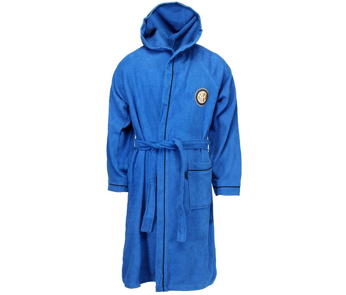 L'accappatoio per adulto Inter è l’ideale da usare o come idea regalo per i tifosi rossoneri. Dotato di cappuccio e tasca, l’accappatoio Inter è prodotto con soffice micro spugna di puro cotone, leggera, ad alto potere idrofilo e poco ingombrante; pratico da usare e facile da lavare, l’accappatoio in microspugna di puro cotone Inter occupa la metà dello spazio di un accappatoio normale. In un campo da calcio, in casa, in palestra o in piscina, è l’accappatoio che tutti i fans interisti vogliono avere; un autentico must have che non può mancare nella borsa per le attività sportive.