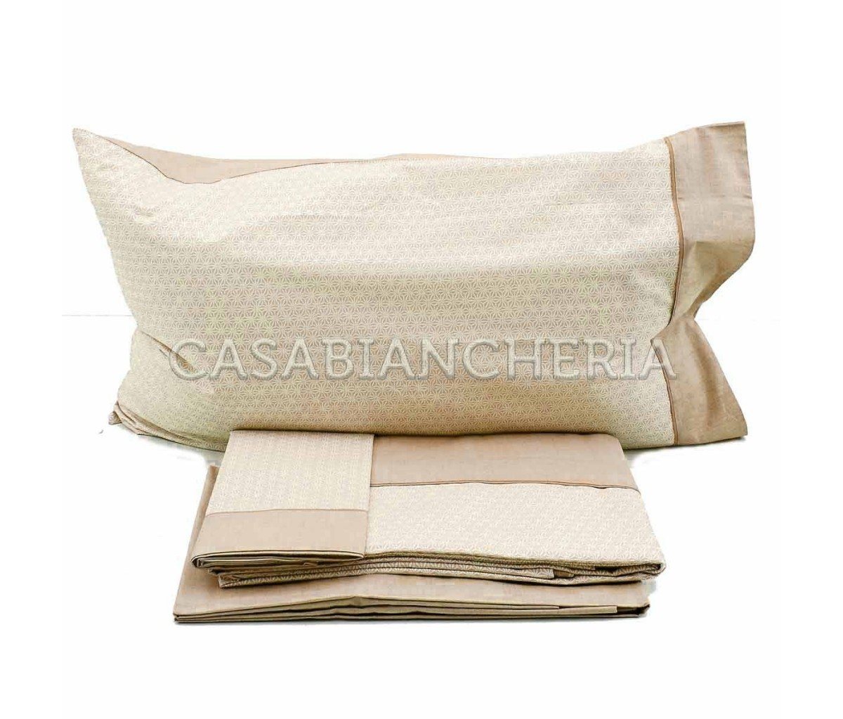 Misure: sacco copripiumino 200x250 + 50 cm patella di rincalzo - lenzuolo con angoli elasticizzati 180x200+25 cm - 2 federe 52x82 cm