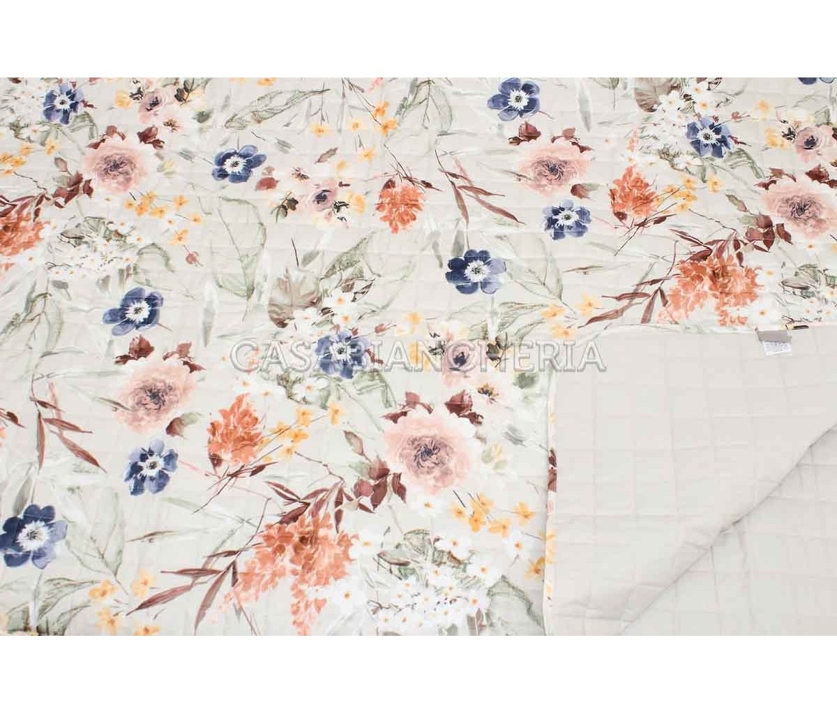 Il copriletto trapuntato Intense è confezionato con tessuto saia jacquard di puro cotone stampato ed imbottito con fibra anallergica.