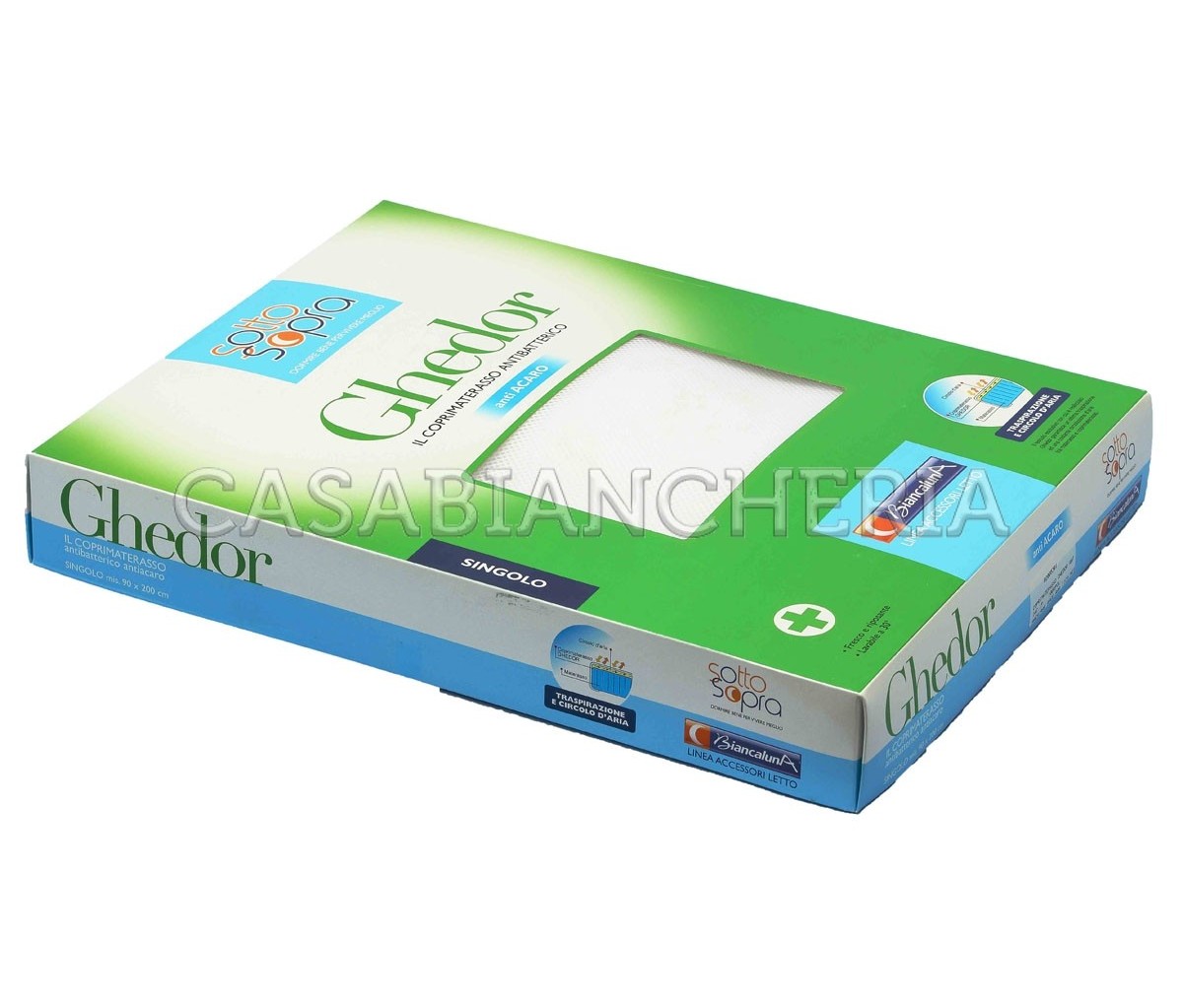 L’esclusivo tessuto del coprimaterasso antibatterico Biancaluna, assicura la traspirazione e la circolazione di aria tra il coprimaterasso ed il materasso garantendo un salutare ed igienico ricambio di aria e l’eliminazione dell’umidità in eccesso che è la principale causa della proliferazione di acari e batteri. Il coprimaterasso antiacaro Ghedor, disponibile nelle misure per letto matrimoniale, singolo e piazza e mezza, è dotato di una fascia alta 30 cm di tessuto con elastici agli angoli per coprire anche i materassi più alti rimanendo fisso e stabile.