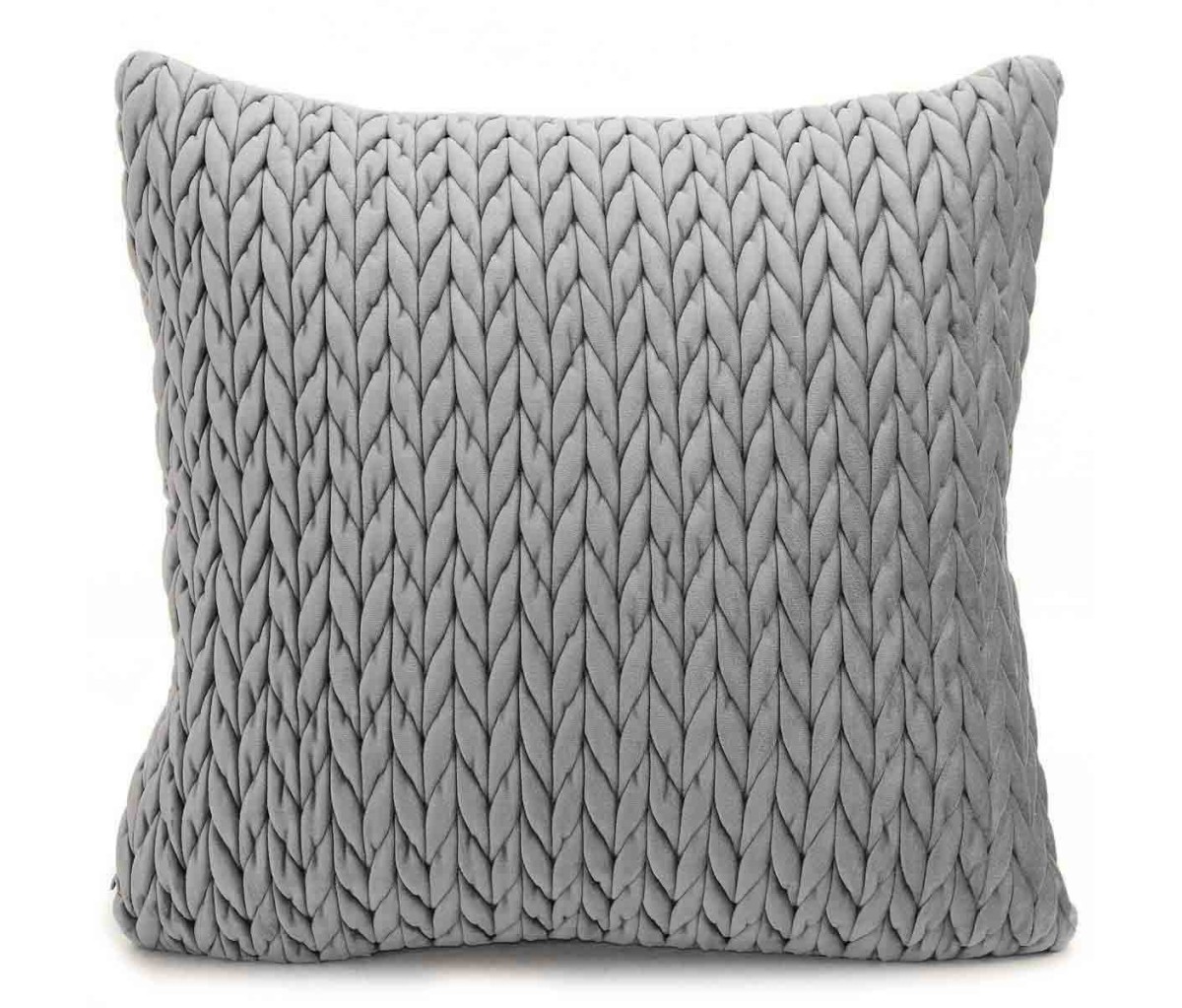 Il cuscino arredo Intreccio è confezionato con tessuto di velluto tinta unita ed è dotato di cerniera per poter sfilare l’interno.
