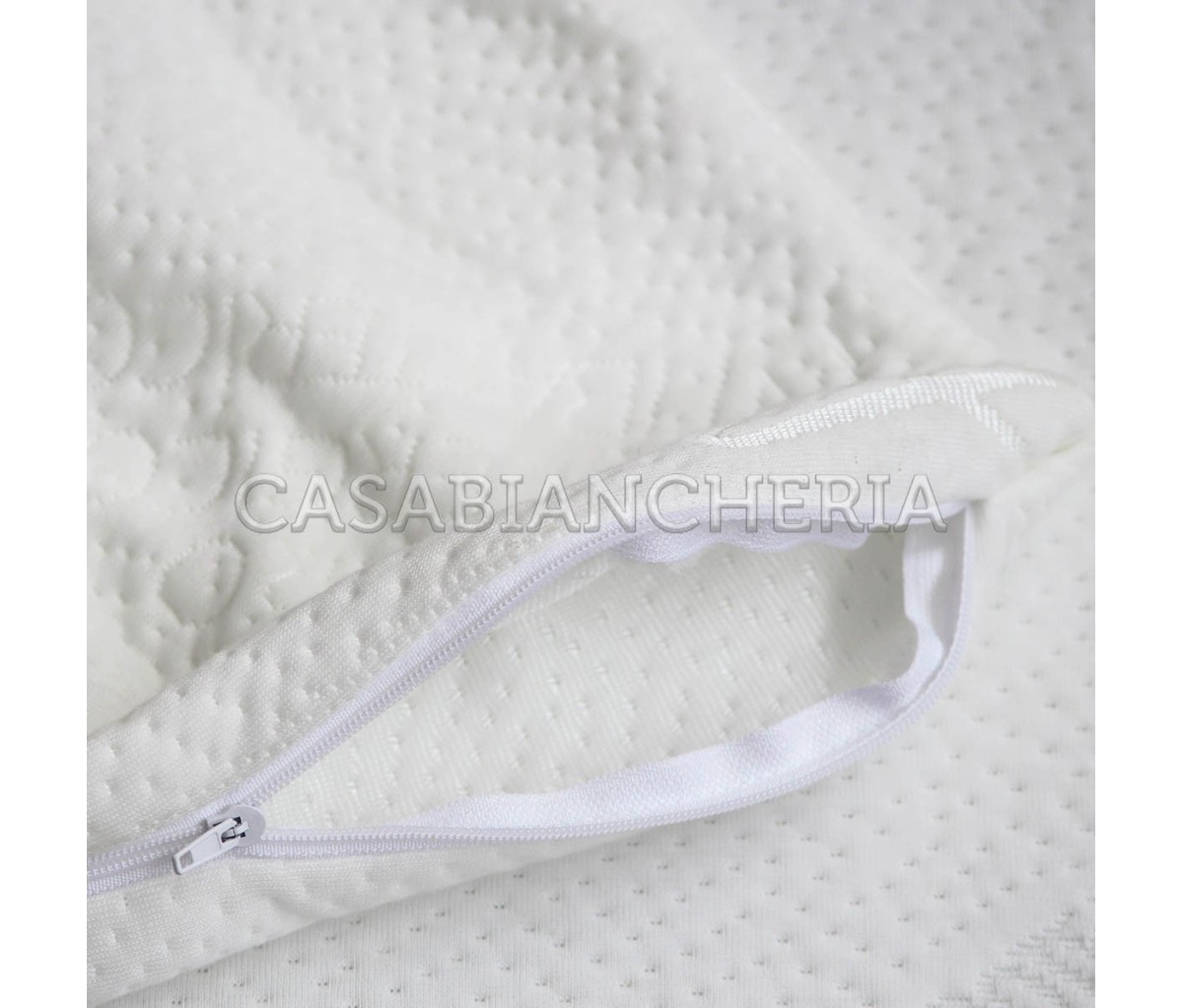 E' munita di cerniera per sfoderare comodamente il cuscino ed è lavabile faclmente in lavatrice e nel nostro store online puoi trovare anche il coprimaterasso uguale.