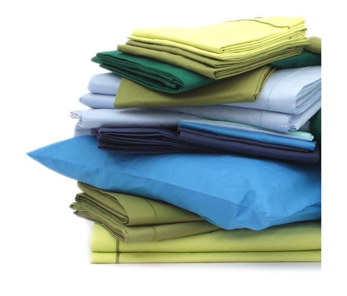 Lenzuola sopra, sotto con angoli, coppia di federe, tutte coordinabili per misura e colore, vendute singolarmente, in puro cotone 100%.