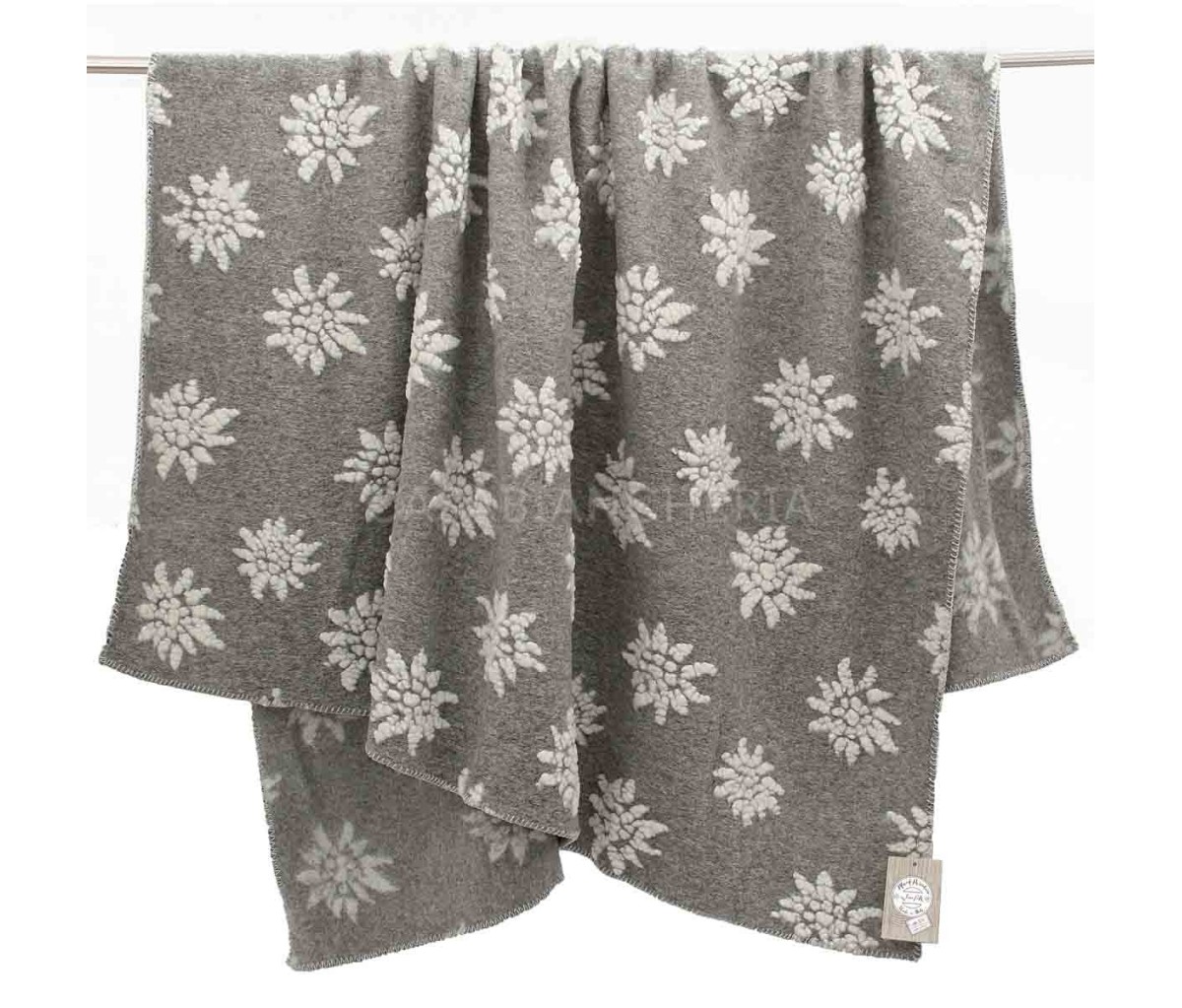 Il plaid Edelweiss è confezionato con lana cotta, rifinito con punto cavallo e decorato con simpatico e gradevole motivo tirolese di stelle alpine. Soffici e vellutati al tatto, i plaid di lana cotta Edelweiss sono multifunzionali e possono essere usati sul divano o sul letto, ideali per i vostri momenti di relax o per la notte.