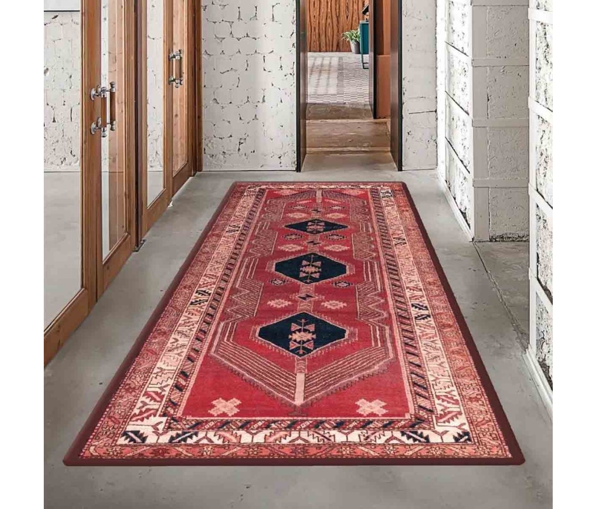 Il tappeto passatoia Bakhtiari, con il suo motivo orientale dai colori rosso e arancio, si adatta sia agli ambienti giovani che classici; con le sue misure da passatoia è adatto nel living, ingresso, camera da letto, bagno o cucina dove serve coprire uno spazio lungo e stretto.