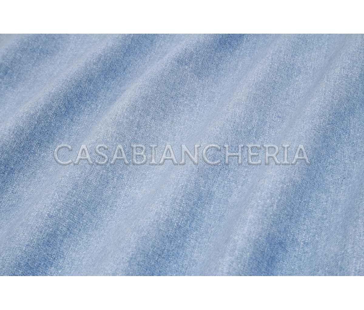 Il telo arredo copritutto Tinta Unita è prodotto con tessuto di puro cotone stampato nelle tonalità azzurro, beige e grigio.