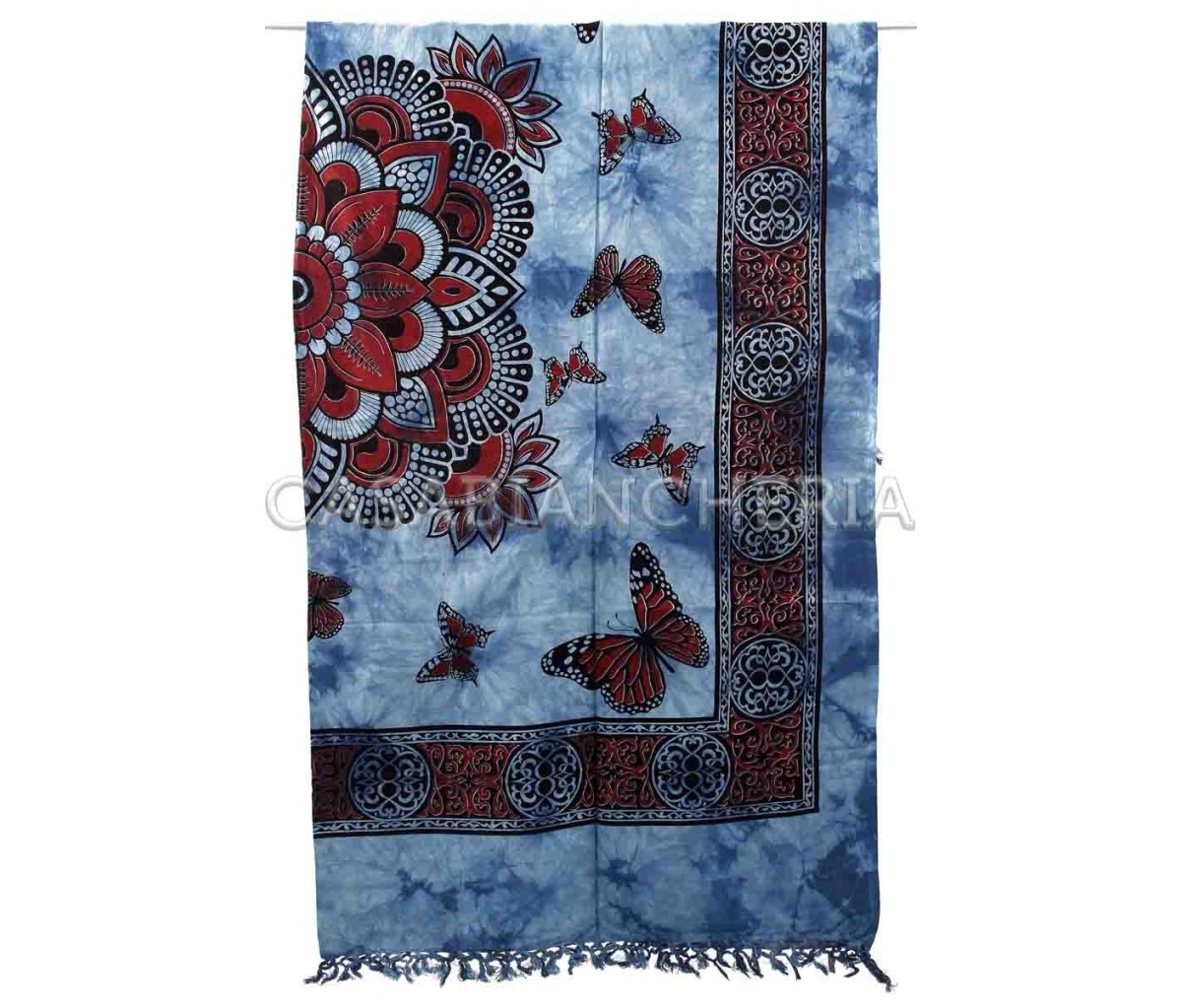 Il telo arredo copriletto indiano Falena è disponibile nella misura 210x240 cm; eventuali piccoli difetti nella stampa sono caratteristiche di questi prodotti artigianali Batik indiani.