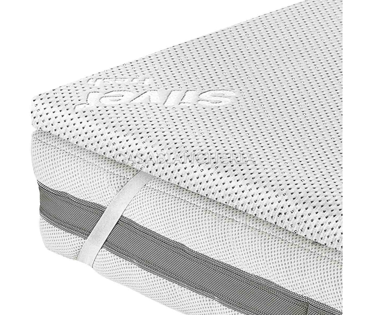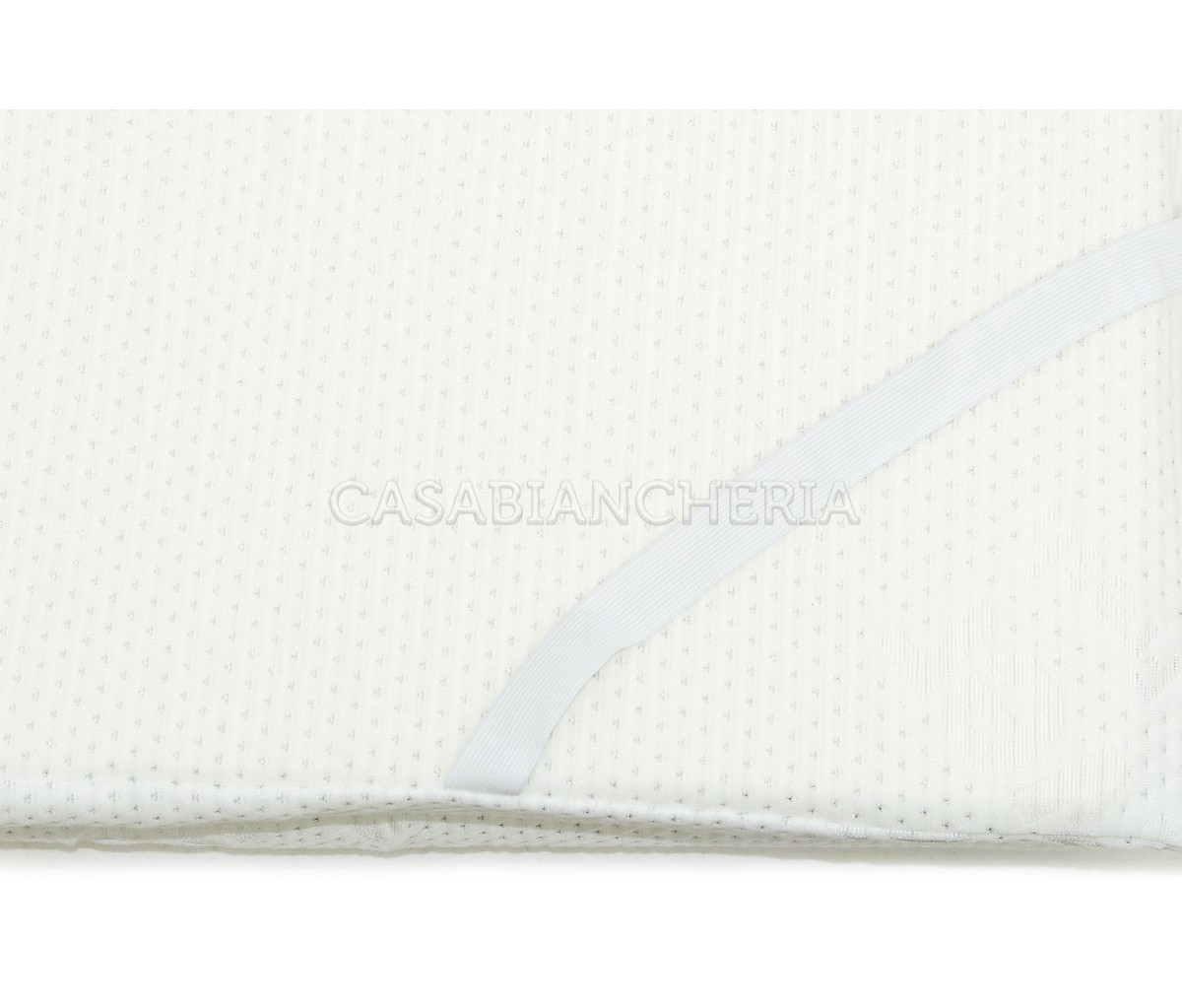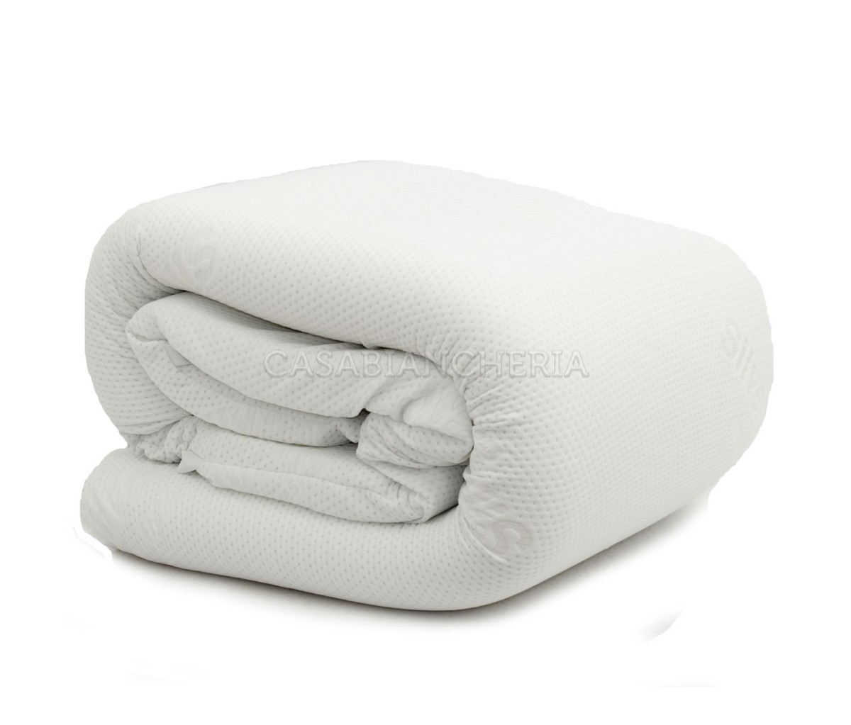 Il coprimaterasso Topper Silver è confezionato con memory foam rivestito di tessuto anallergico sfoderabile munito di cerniera. L’interno in memory foam dallo spessore di 5 cm dona al materasso un maggior confort uniformando il peso del corpo su tutta la superficie del materasso. Il tessuto di rivestimento contiene fibra di argento che grazie alla sua azione batteriostatica combatte muffe e batteri nocivi alla salute e responsabili di cattivi odori. La fibra di argento ha anche una funzione antistatica per l’alta capacità di conduzione elettrica e grazie alla sua capacità termica si mantiene fresca in estate e calda in inverno. Il topper Silver, disponibile nelle misure per letto singolo e matrimoniale, è munito di elastici ai 4 angoli per restare aderente al materasso e vestirlo perfettamente. Il coprimaterasso Topper aumenta la sensazione di confort migliorando il riposo e ritarda l’usura del materasso proteggendolo da polvere e batteri; comodo, igienico e sfoderabile per poter lavare la fodera rende più gradevoli i materassi troppo rigidi o troppo usurati.