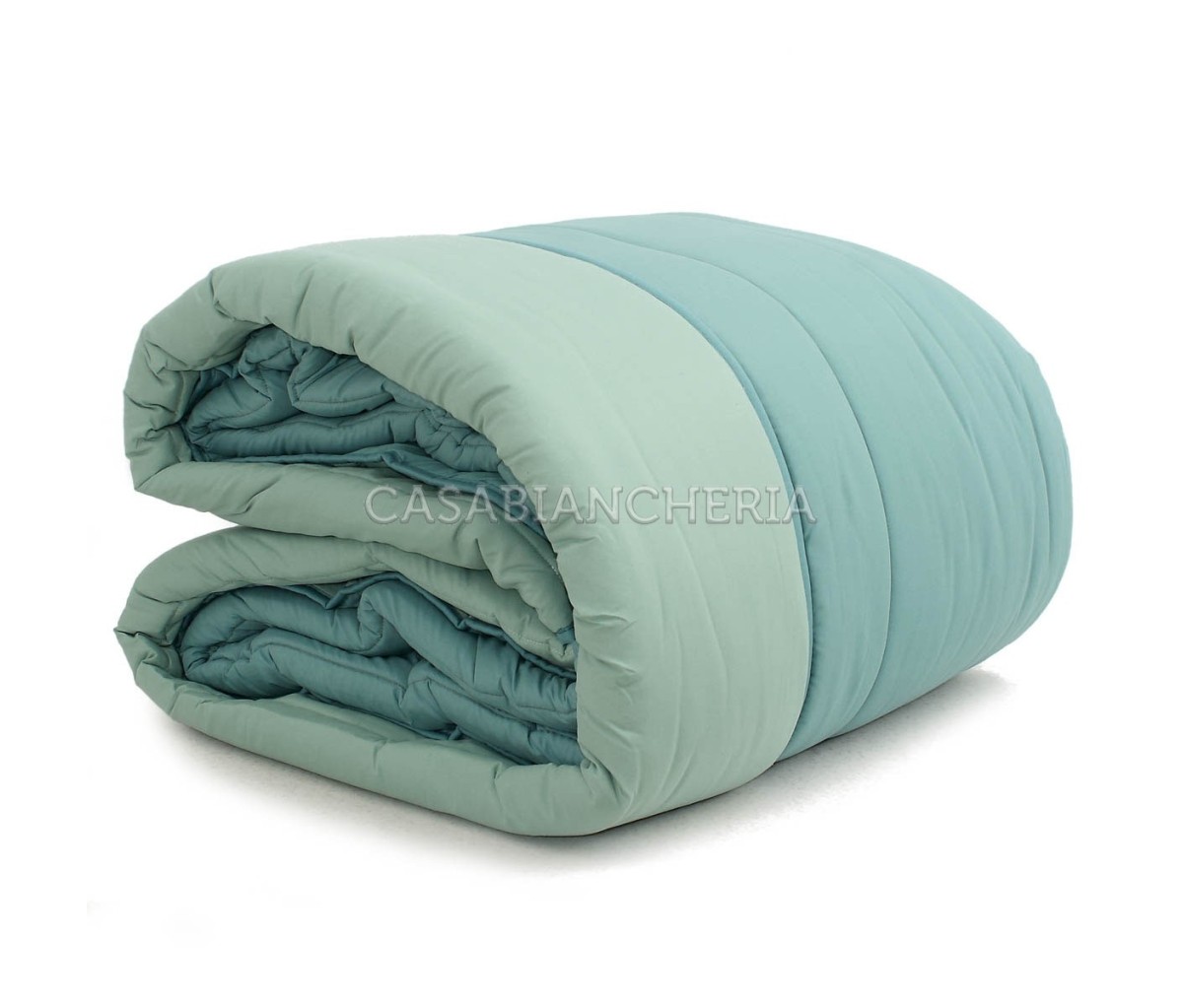 La trapunta Double Face Tinta Unita mano pesca coniuga l’estetica con la praticità. Imbottita con soffice falda di fibra di poliestere anallergico, la trapunta Tinta Unita ha il tessuto esterno di microfibra mano pesca con un lato chiaro e uno più scuro. La leggera garzatura del tessuto dona un tatto particolarmente caldo e morbido; l’imbottitura in soffice fibra di poliestere anallergico, rende il piumone Tinta Unita leggero e piacevole all’uso; l'ideale per ambienti con temperature sui 18/22 gradi.