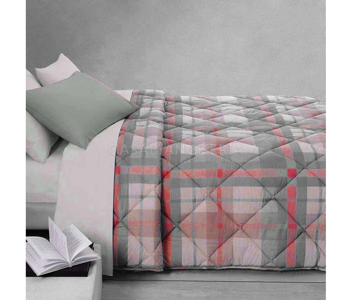 La trapunta Gabel Scott, è confezionata con tessuto madapolam di puro cotone sweet touch, morbidissima al tatto stampato con fantasia scozzese e imbottita con soffice fibra anallergica.