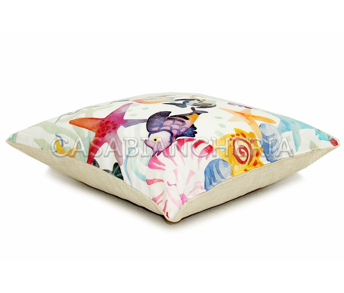 Il cuscino da arredamento Pesci è prodotto e confezionato in Italia con cura artigianale.
