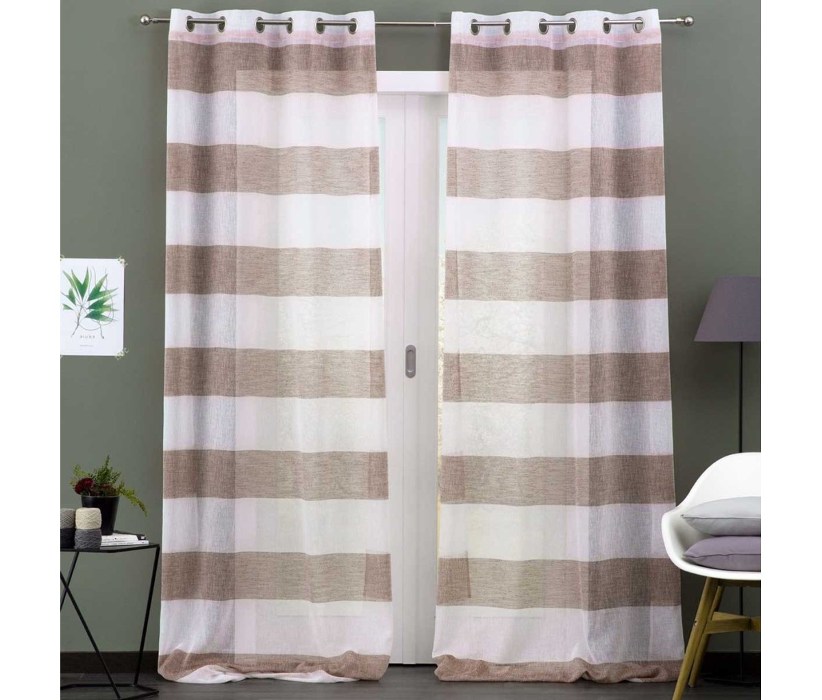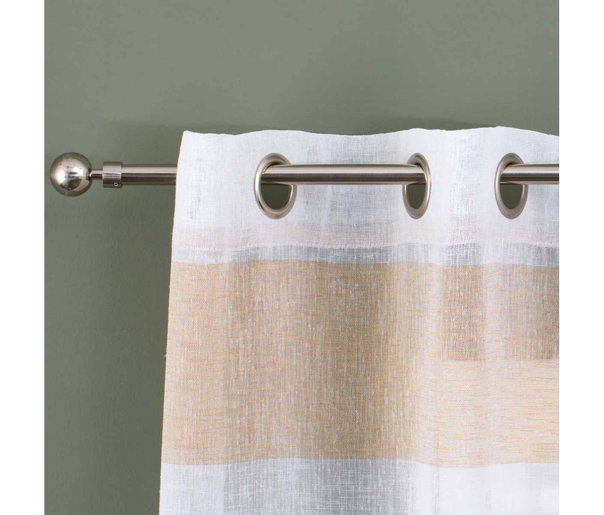 La tenda per finestra Laos è prodotta con morbido tessuto tinta unta semi coprente effetto lino e munita di occhielli passa bastone in metallo per la messa in posa. Di semplice manutenzione, il pannello tenda pronta per finestra Laos si lava facilmente in lavatrice e si posa sul vetro ancora umida senza stirare. Grazie alla sua ampia gamma di colori ed alle sue righe orizzontali è ideale per arredare ogni ambiente della casa, dalla sala alla camera da letto ed è coordinabile con la tenda tinta unito con lo stesso tessuto e colore.