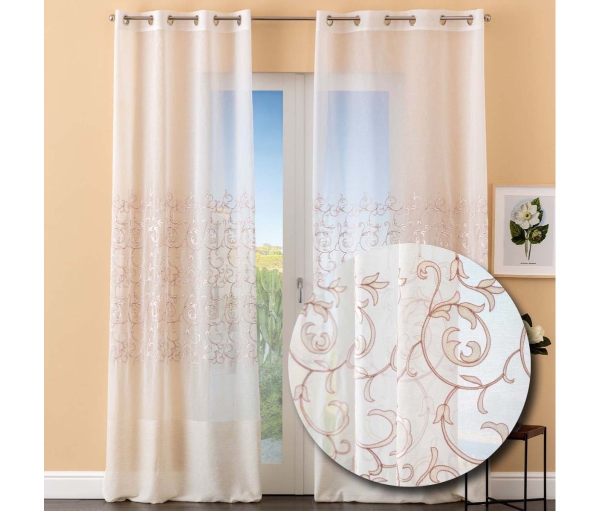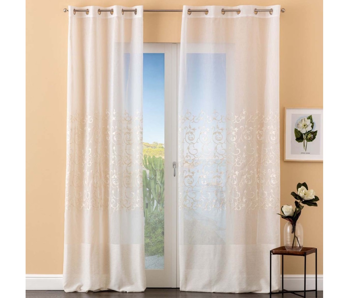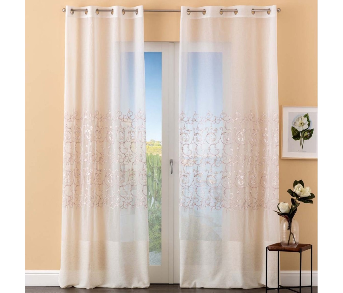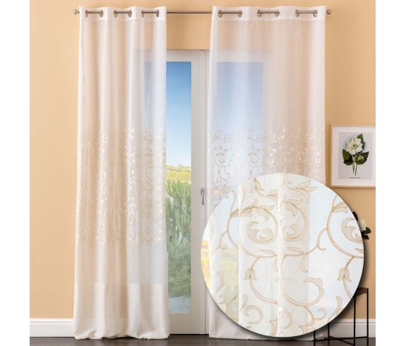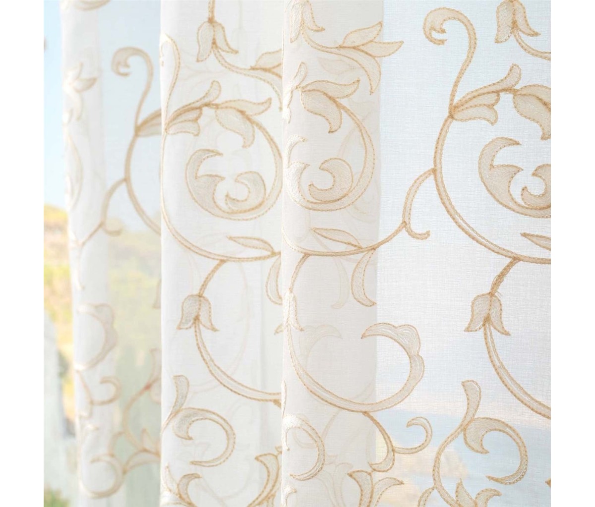 La tenda per finestra Beatrice è prodotta con morbido tessuto di poliestere ricamata con motivo rinascimentale e munita di 8 anelli passa bastone in metallo per la messa in posa. Di semplice manutenzione, la tenda pronta per finestra Beatrice si lava facilmente in lavatrice e si posa sul vetro ancora umida senza bisogno di stirarla. Ideale per ogni ambiente della casa, dalla sala alla camera da letto, arreda la casa con un tocco romantico.