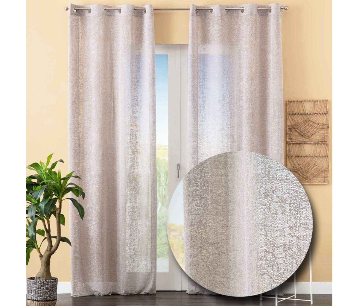 La tenda per finestra Inlays è prodotta con morbido tessuto di poliestere stampato con motivo marmorizzato e munita di 8 anelli passa bastone in metallo per la messa in posa. Di semplice manutenzione, la tenda pronta per finestra Inlays si lava facilmente in lavatrice e si posa sul vetro ancora umida senza bisogno di stirarla. Luminosa e leggera, la tenda confezionata Inlays è ideale per ogni ambiente della casa, dalla sala alla camera da letto.