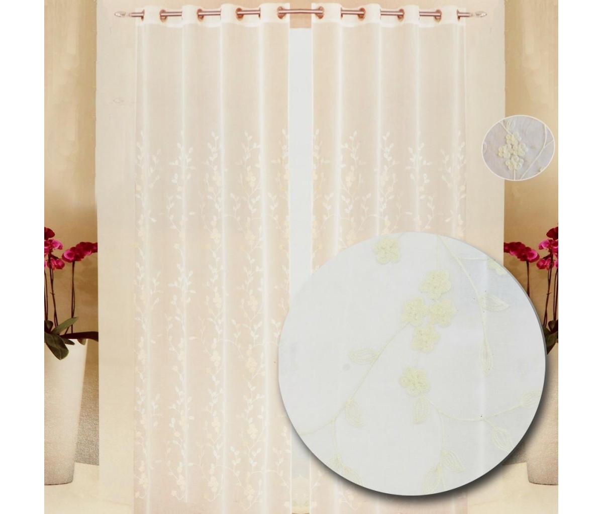 Tenda pannello confezionata Lili ricamata