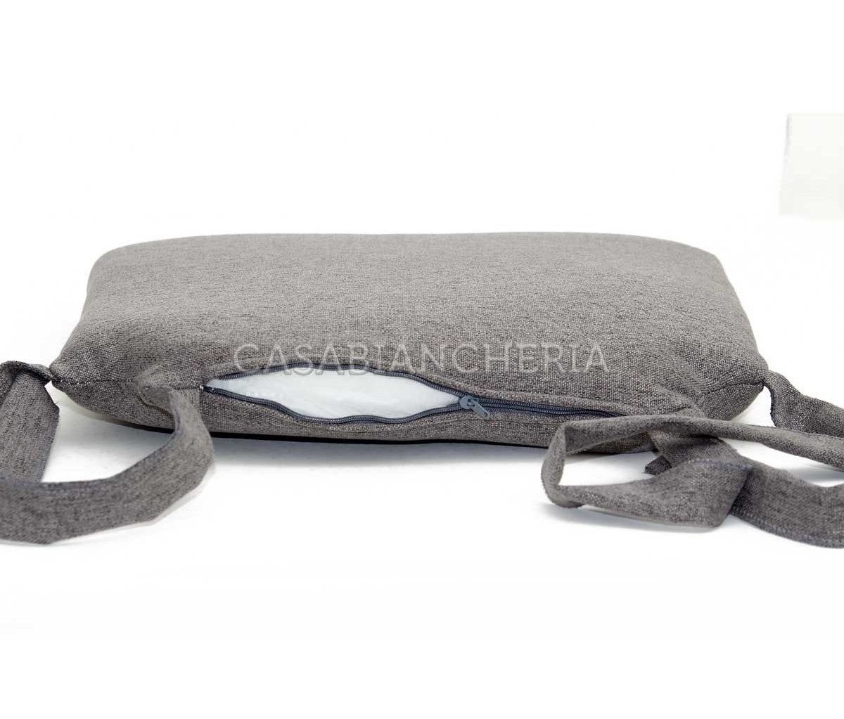 Imbottito con un soffice strato di gommapiuma ad alta densità foderato con tessuto non tessuto, è dotato di cerniera per potere togliere l’interno ed è fornito di laccetti per essere fermato allo schienale della sedia. Il resistente tessuto antimacchia in poliestere riveste il cuscino da entrambe le parti garantendone una lunga durata e, particolare non indifferente, i laccetti ferma cuscino sono fatti con lo stesso tessuto per una maggiore resistenza ed una migliore estetica.