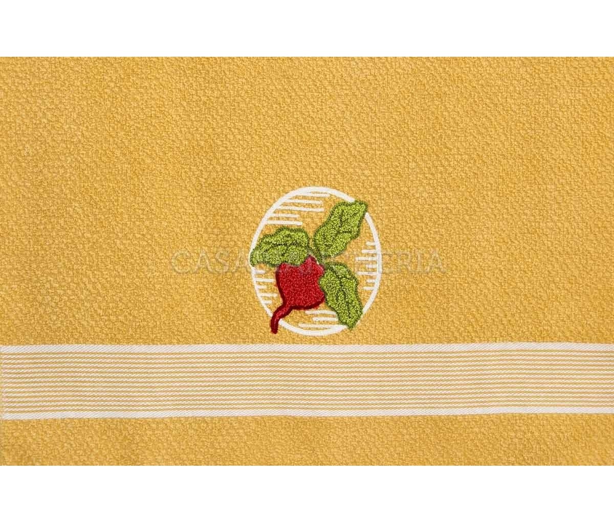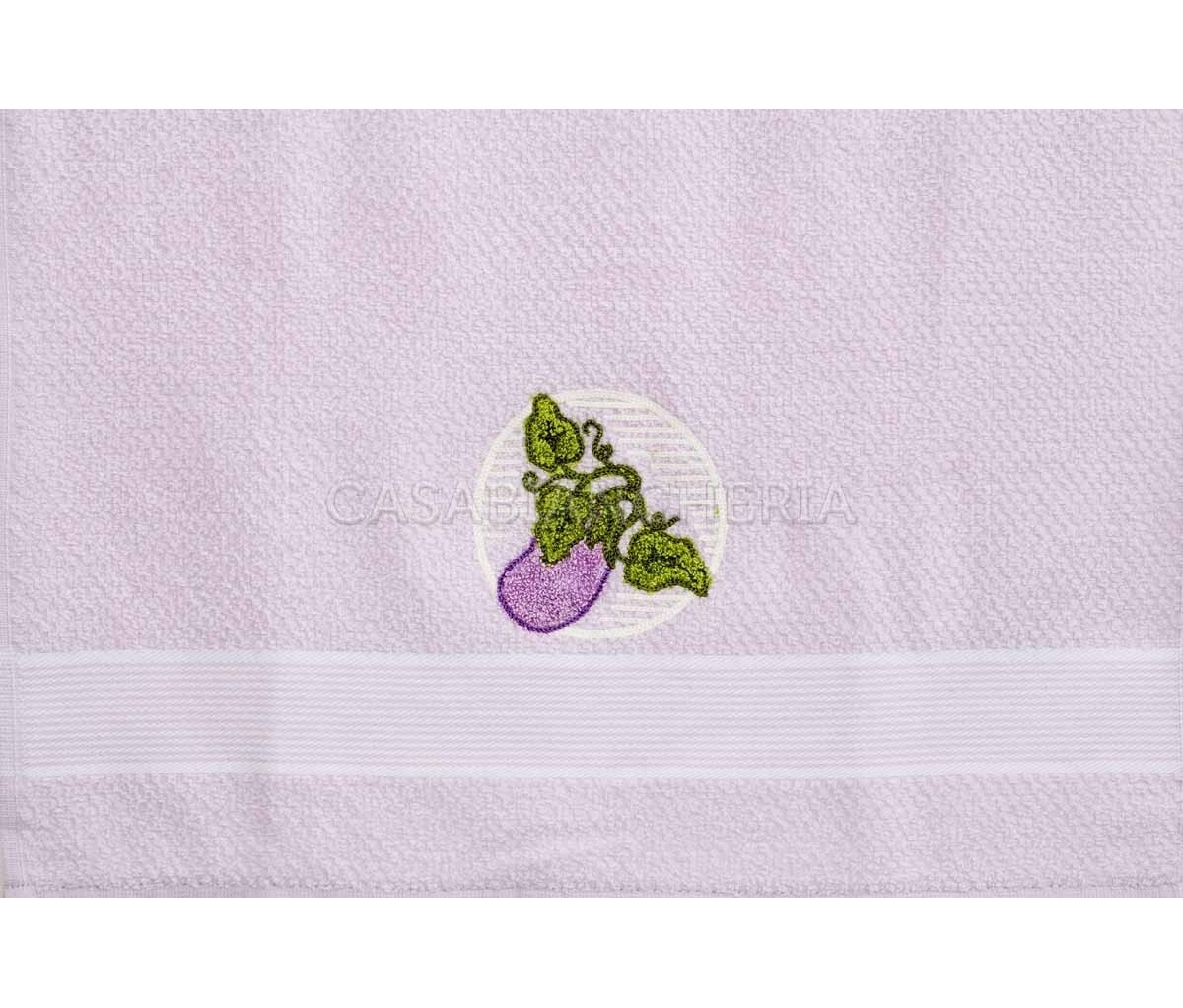 L'asciugamano da cucina Clarissa, confezionato in set da 6 pezzi, è prodotto con spugna jacquard ed ha un ricamo su ogni singolo asciugamano.