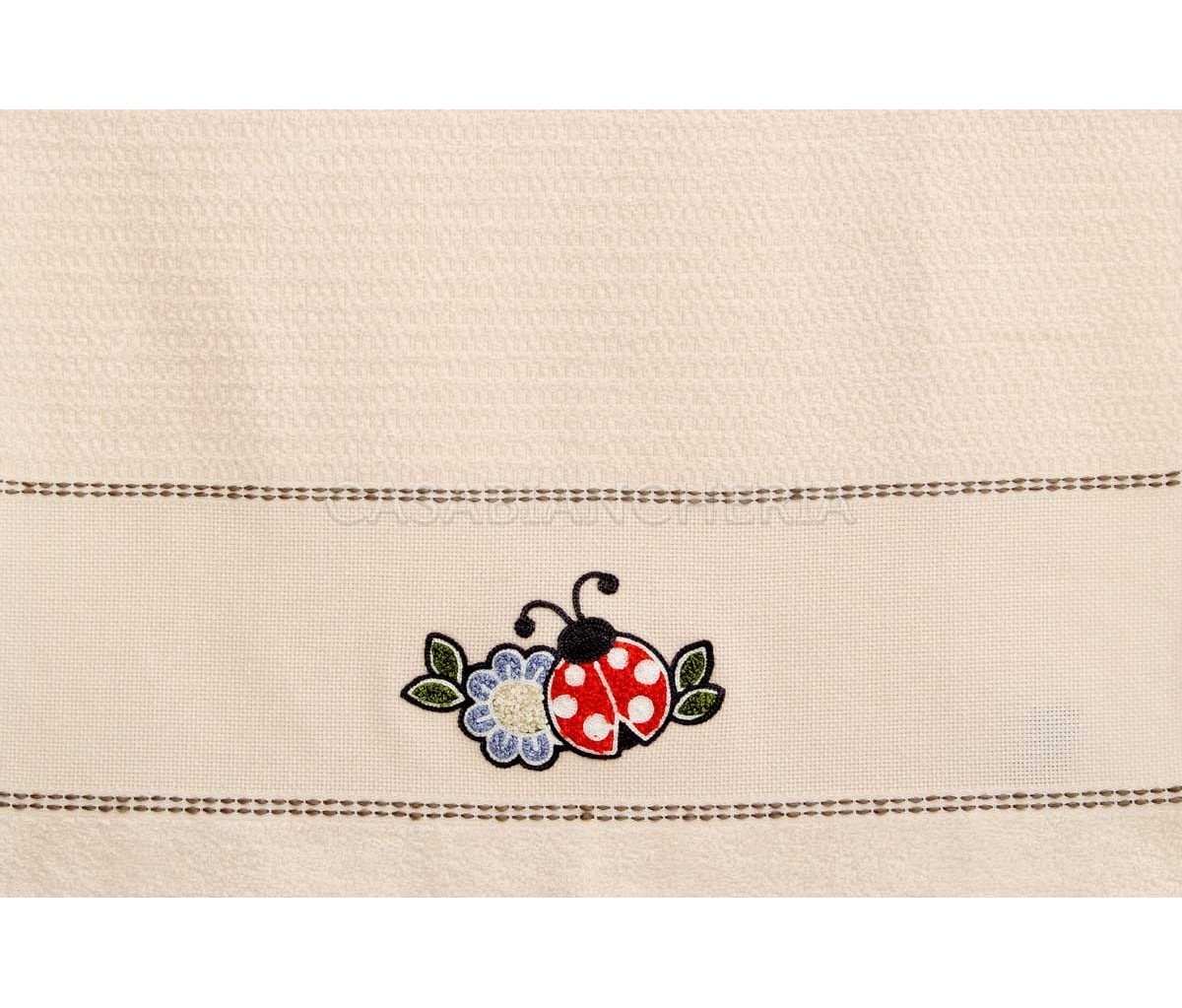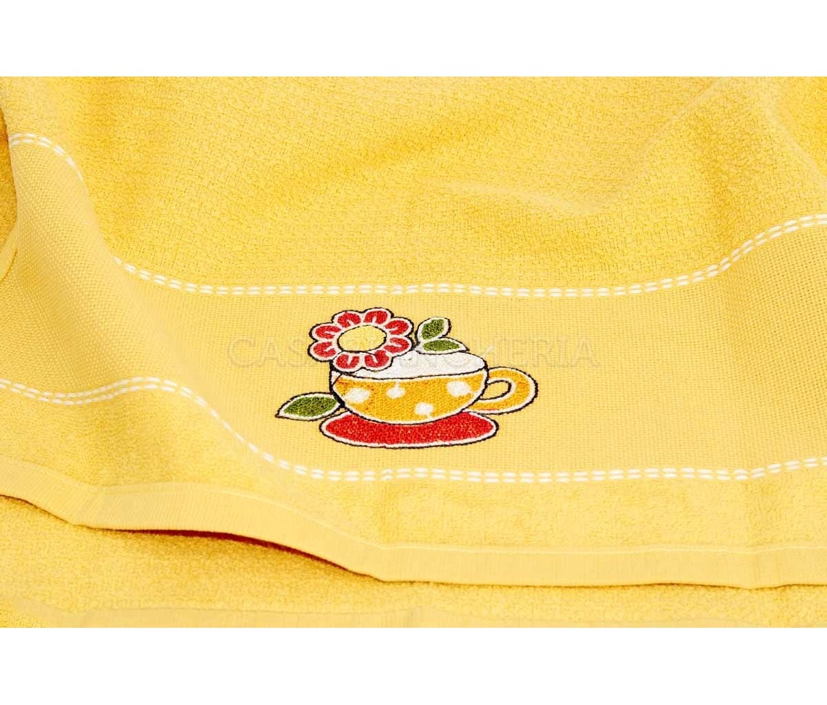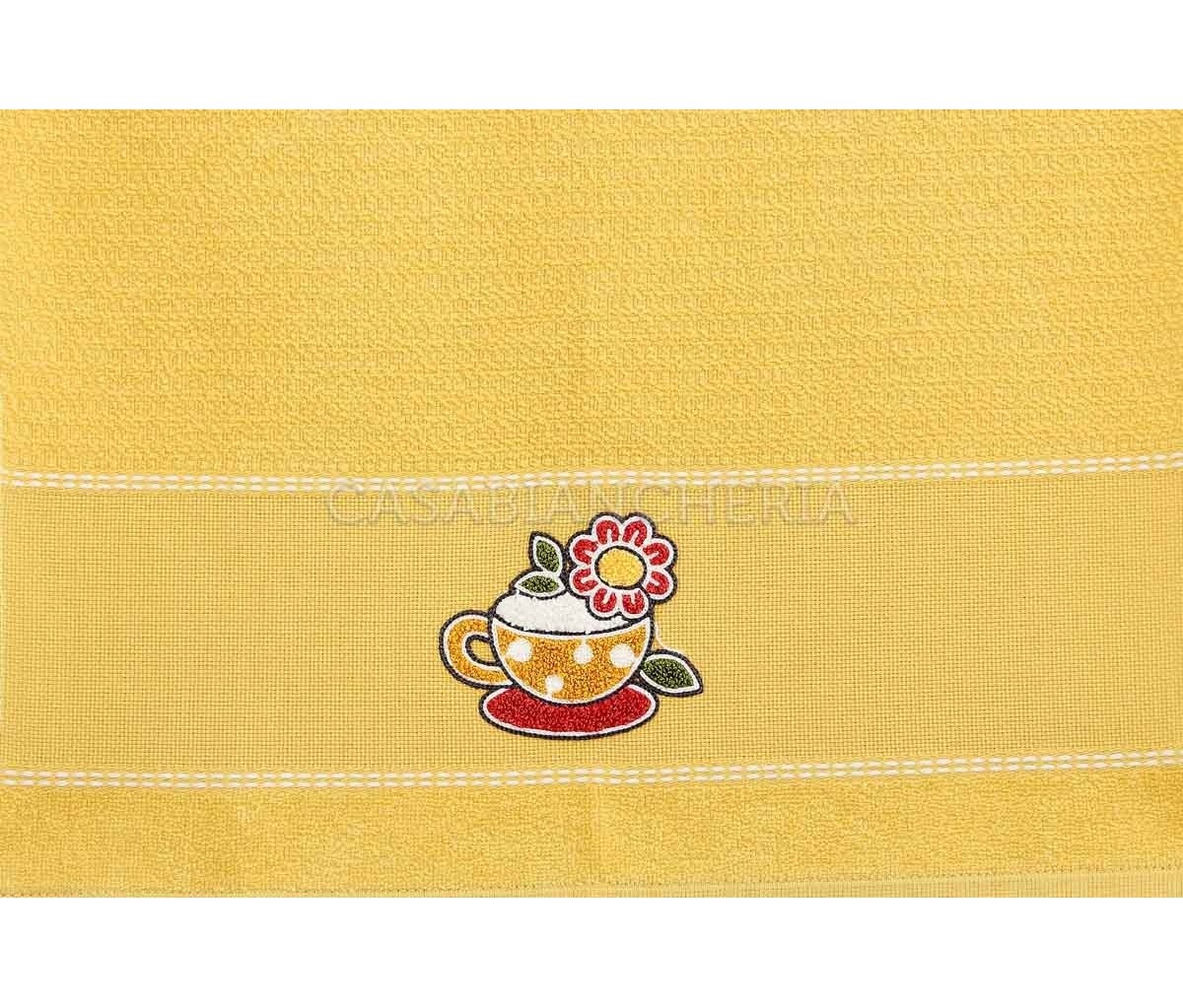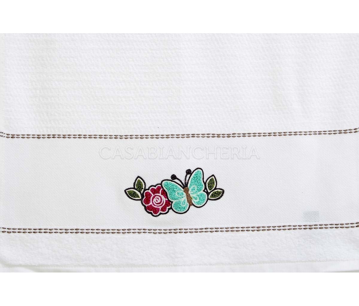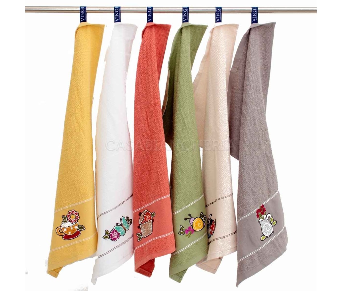 L'asciugamano da cucina Betty, confezionato in set da 6 pezzi, è prodotto con spugna jacquard a chicco di riso ed ha un ricamo su ogni singolo asciugamano.