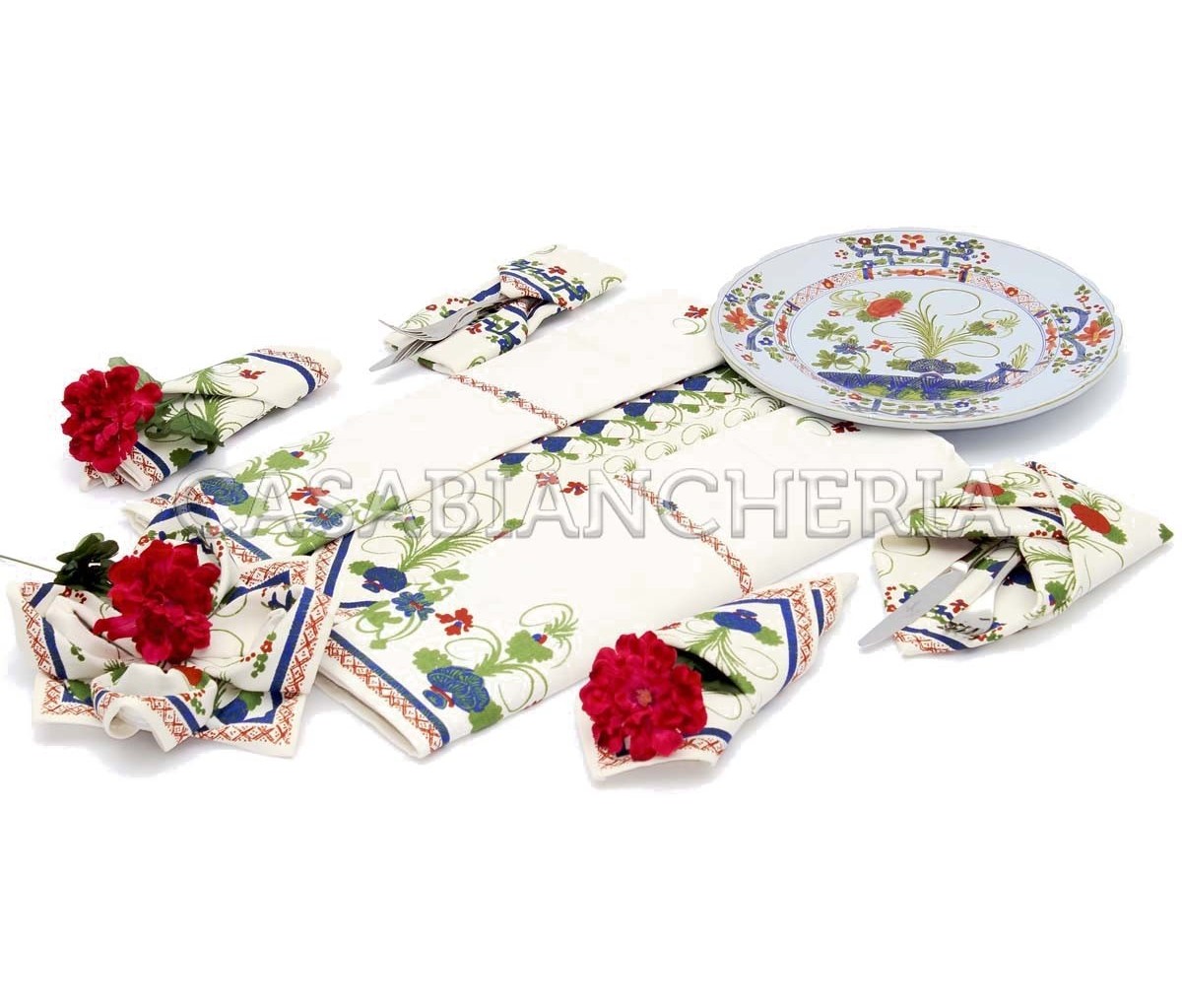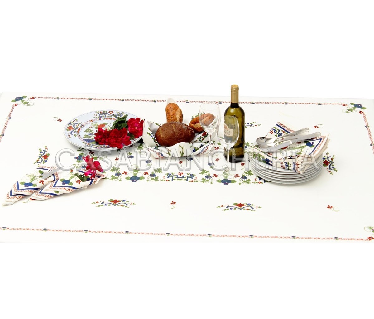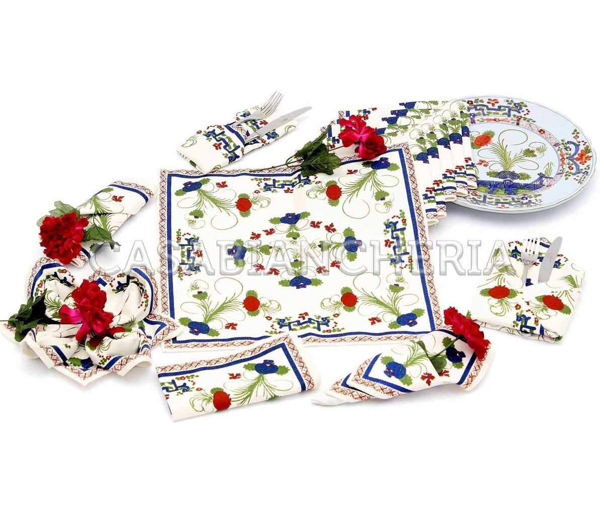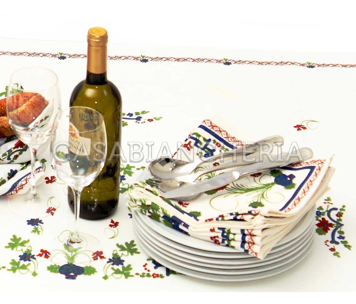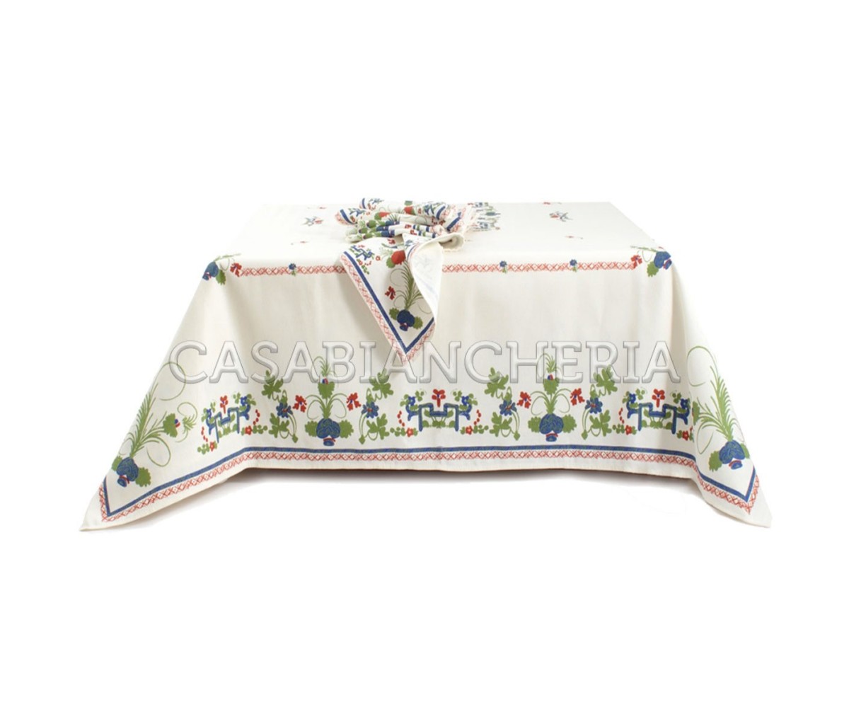 La tovaglia è disponibile in due misure per 6 e per 12 posti, con e senza tovaglioli.