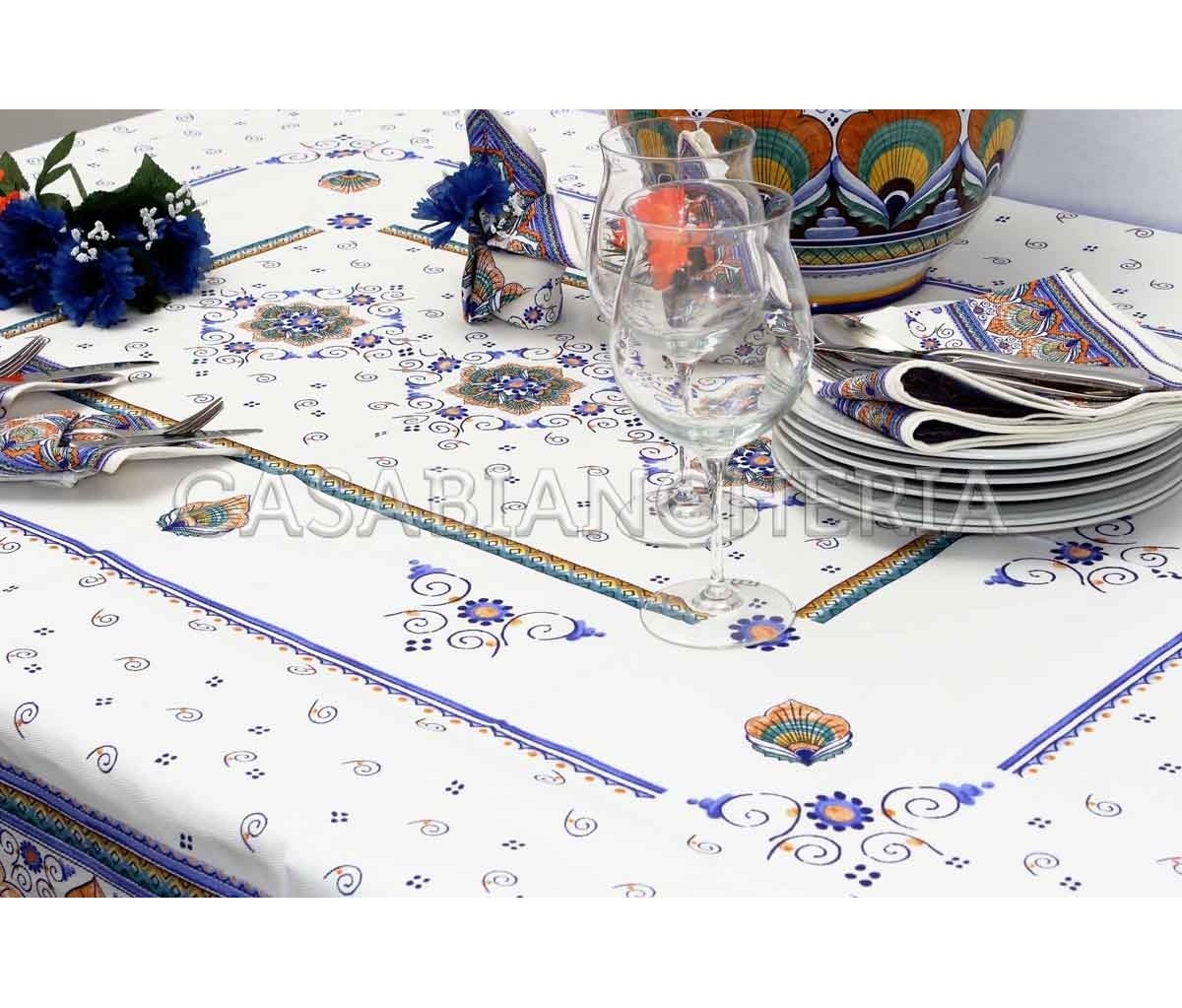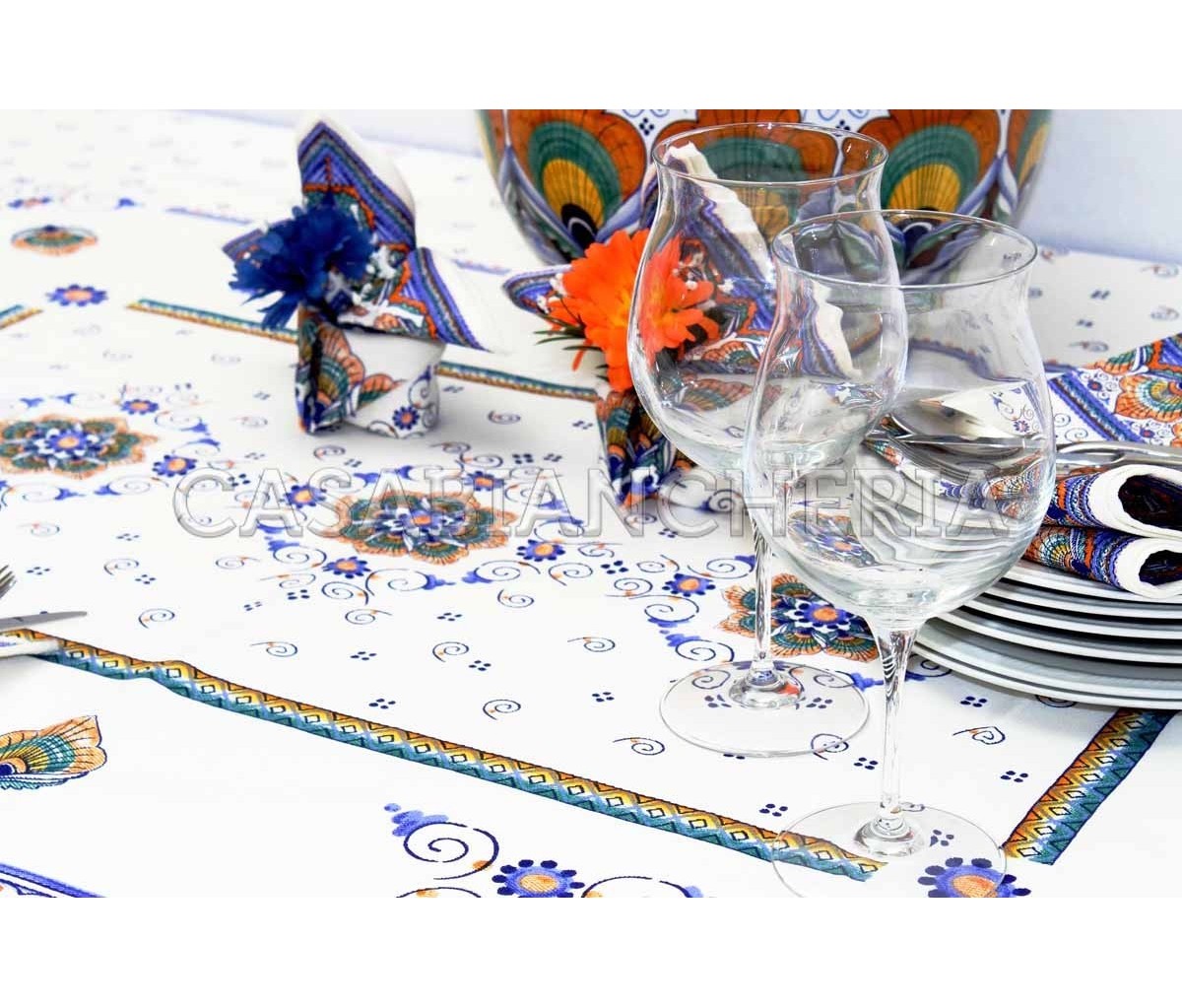 Tovaglia stampa romagnola Pavona con o senza tovaglioli