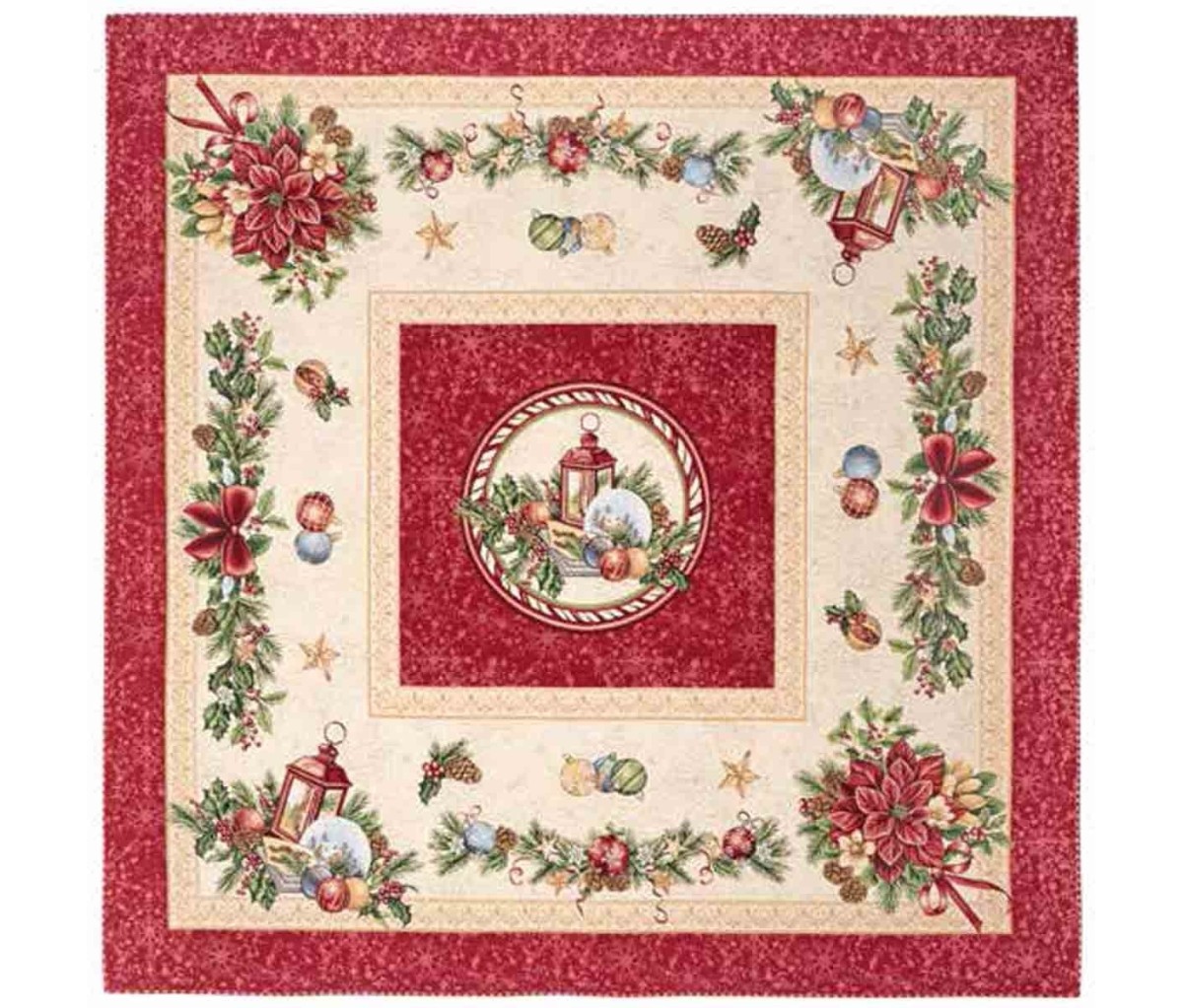 Il centrotavola di Natale Lanterna è prodotto con tessuto di gobelin con lurex con motivo piazzato a riquadro. Il runner centrotavola ornamentale Lanterna, disponibile nelle misure quadrata 100x100 cm e rettangolare 40x140 cm, è coordinabile con i cuscini arredo che trovi nel nostro shop online.