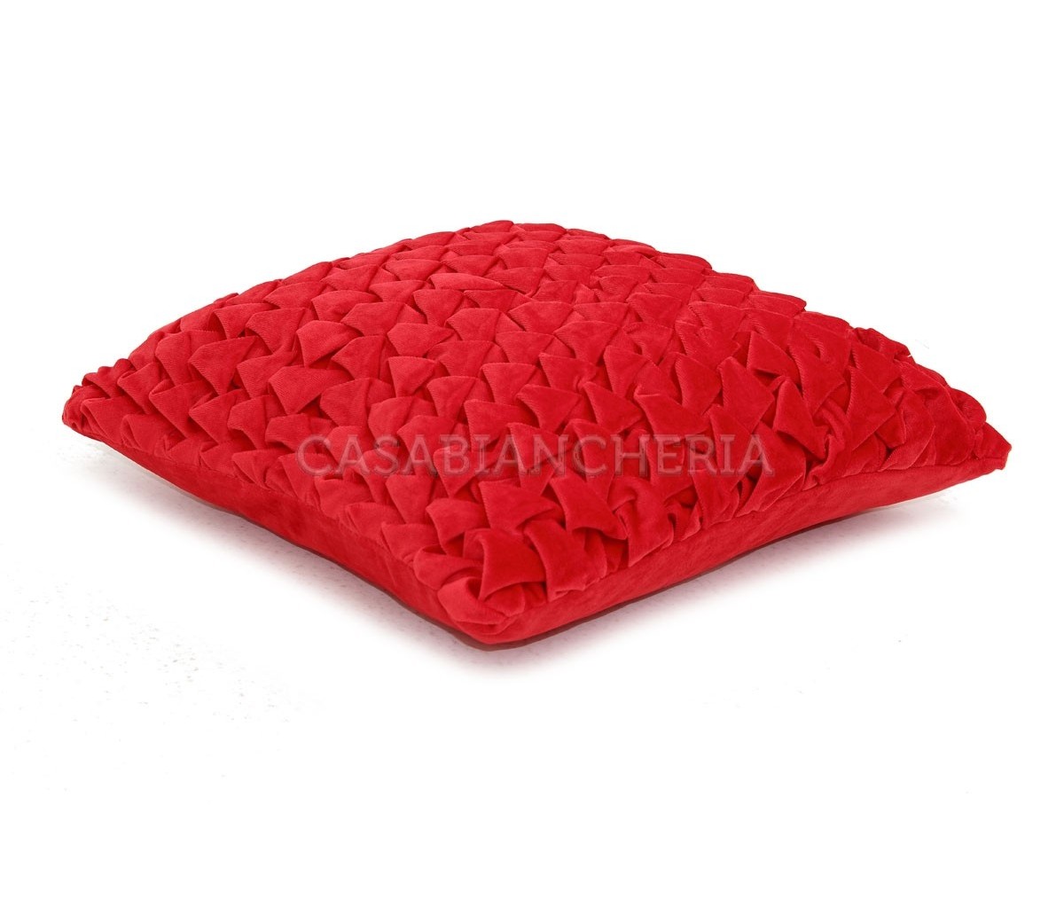 Il cuscino decorativo natalizio Red Christmas Velvet è prodotto con tessuto di velluto plissettato ed è ha la cerniera per poter sfilare l’interno.