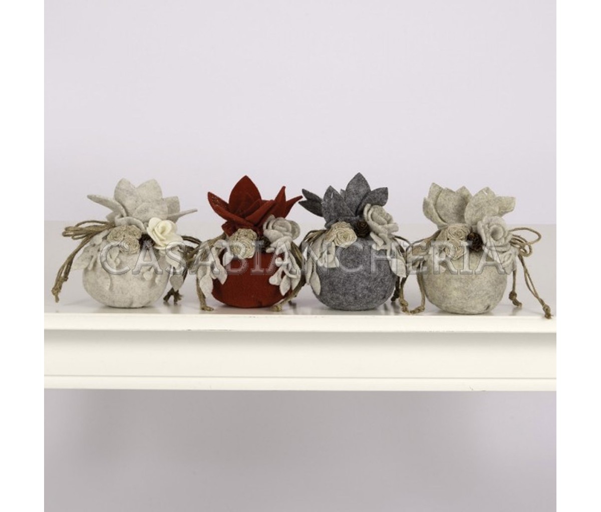 LA PALLA NATALIZIA IN FELTRO È VENDUTA IN SET DA 4 PEZZI. IL PREZZO DI € 24.80 È RIFERITO ALL'INTERO SET. IL COSTO DEL SINGOLO PEZZO È DI € 6.20