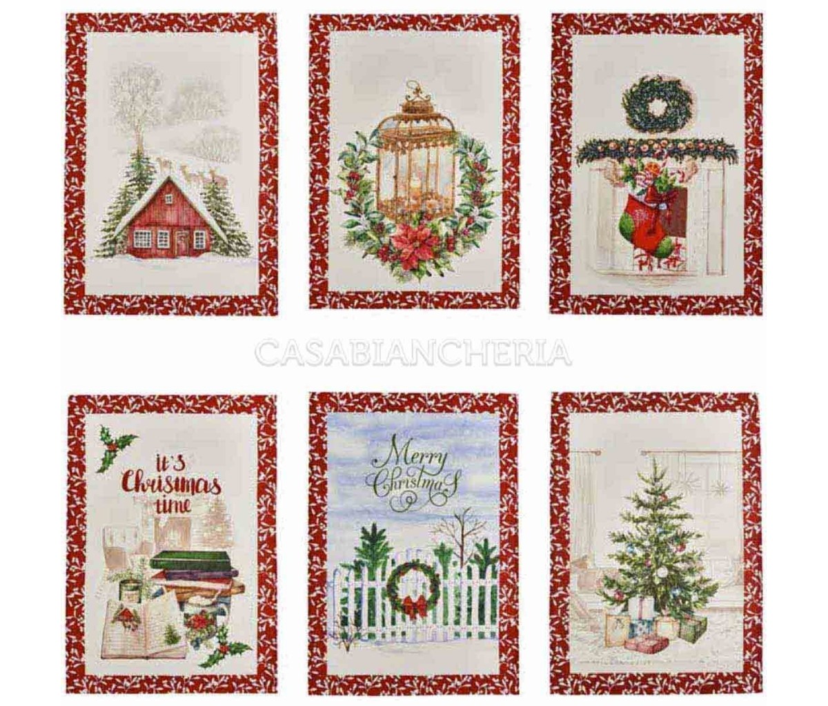 Gli asciuga piatti Natale Tiffany Neve sono confezionati con tessuto di puro cotone stampato in digitale a riquadro con motivi natalizi. Lo strofinaccio Natale Tiffany Neve è un autentico quadretto per chi vuole completare l’arredamento in stile natalizio della cucina. Il canovaccio di cotone Natale può essere usato come tovaglietta da colazione o semplicemente per asciugare i piatti ed è disponibile in set da 6 pezzi ognuno con differente disegno.