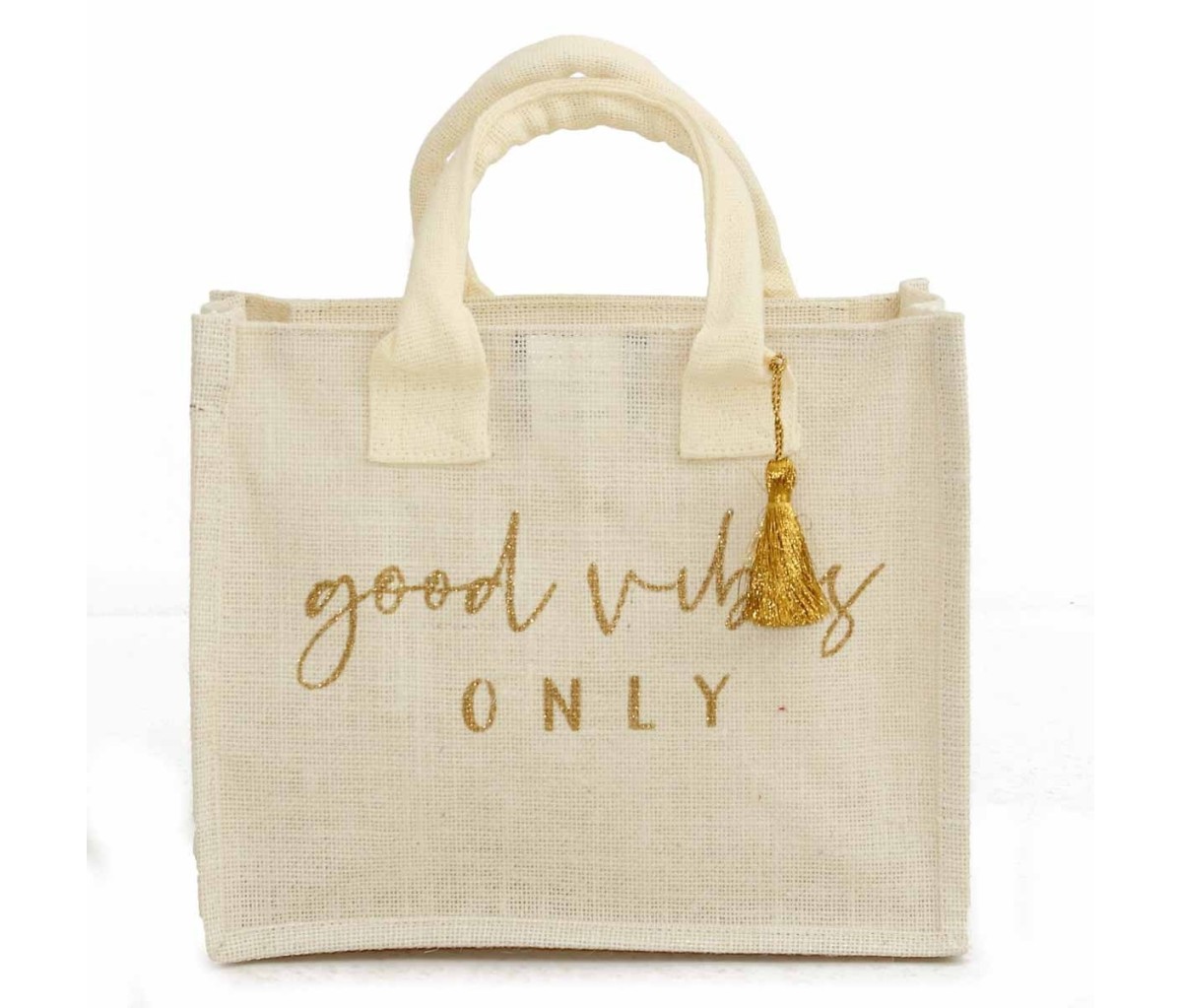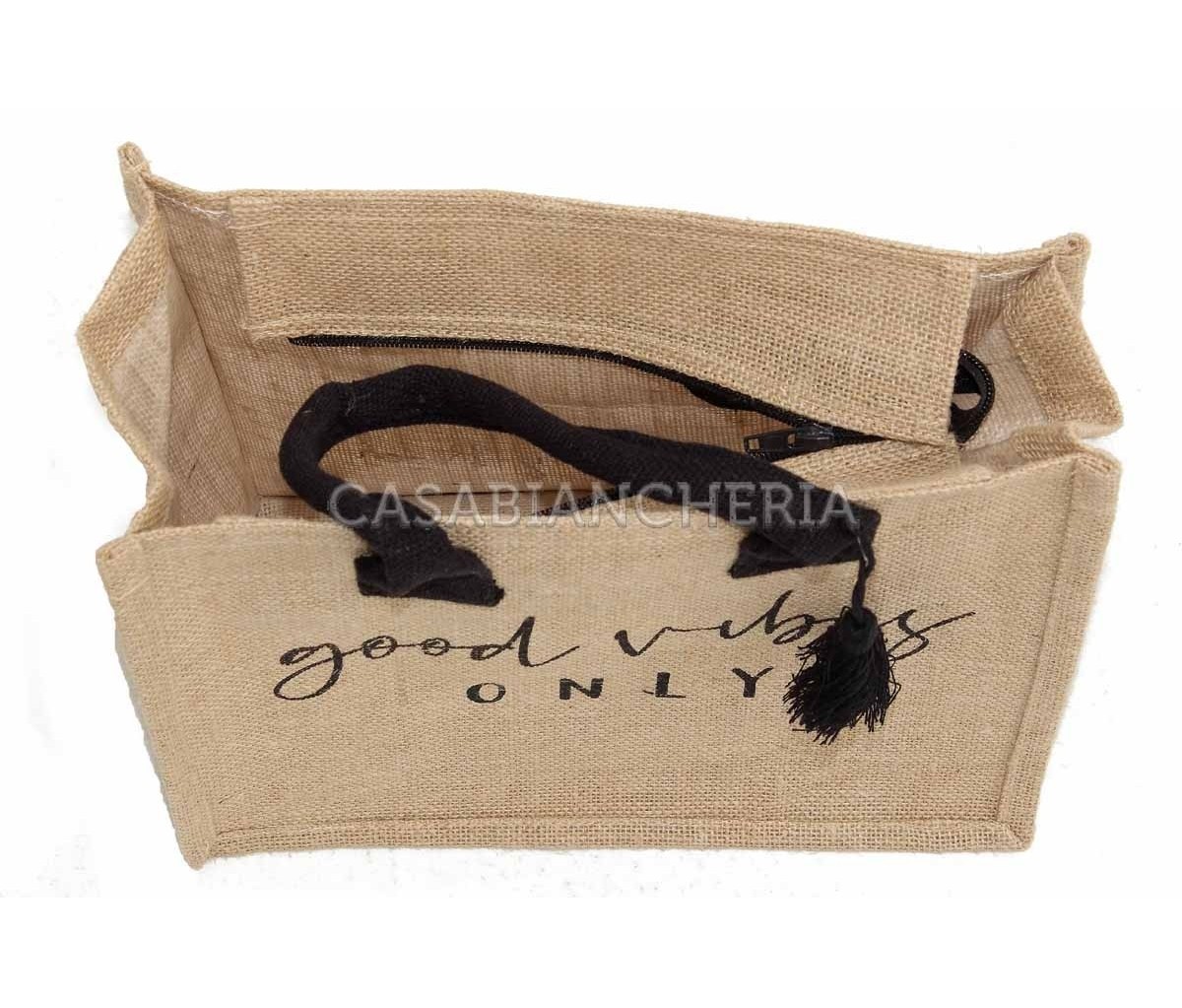 Borsa da mare hand bag con cerniera Good Vibes in juta