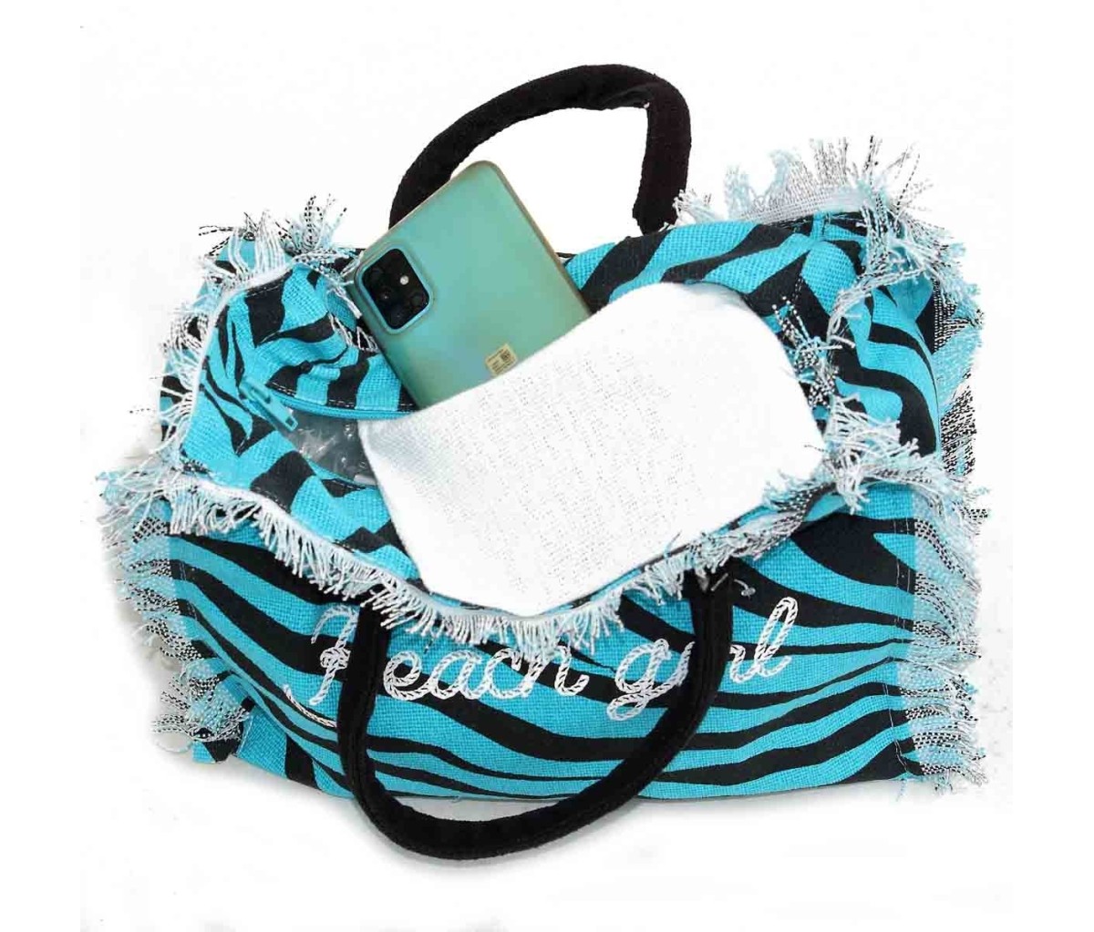 Borsa da mare hand bag Zebra con cerniera