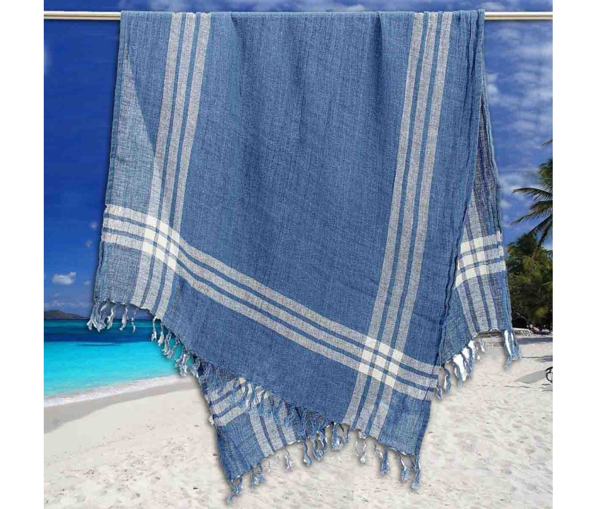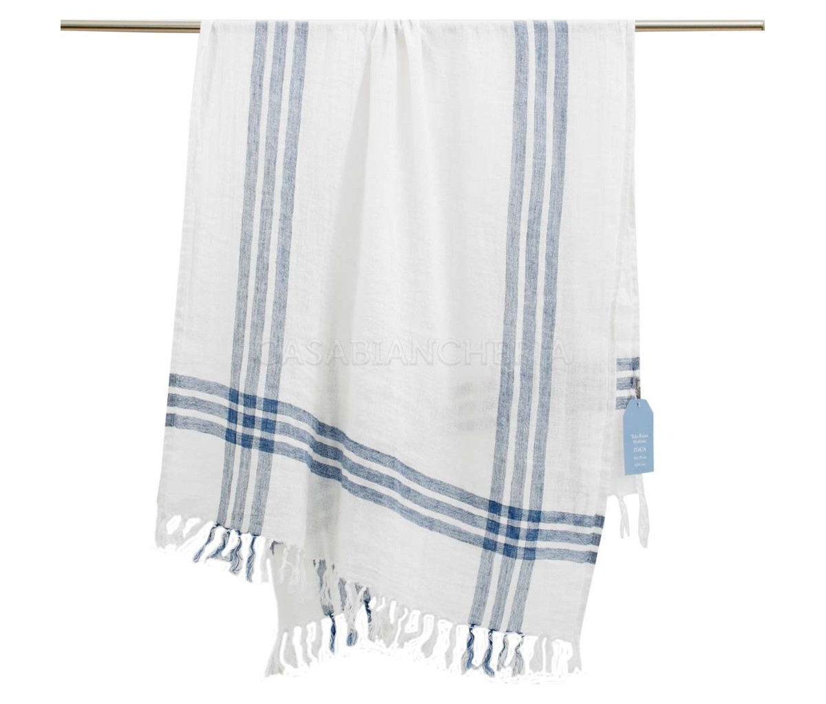 Grazie al suo morbido tessuto, si può usare come telo mare o come pareo. Il telo da spiaggia antisabbia Itaca è realizzato con tessuto di puro lino tinto in filo con righe ai bordi; rifinito su due lati con frange annodate a mano, il telo da mare fouta in lino Itaca è un accessorio indispensabile per la tua estate, al mare o in piscina, ideale per coprire il lettino o per stendersi al sole sulla spiaggia.